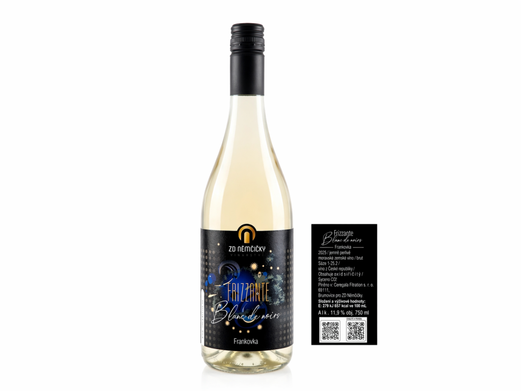 Elegantní perlivé víno vyrobené z modré odrůdy Frankovka metodou blanc de noir – tedy lisováním modrých hroznů na bílé víno. Výsledkem je svěží, polosuché frizzante s jemným perlením, lehkou ovocností a příjemnou strukturou.